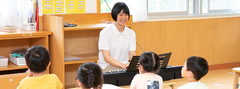 中学から高校までは、「体育の先生」になりたいと思っていました。ですが進路を考えるようになり、自分の性格には向いていないことに気がついたんです。改めてどんな仕事がしたいかを考えた時に、保育士を目指そうと思いました。通っていた幼稚園がすごく楽しかったという記憶があり、心の中では少し幼稚園の先生にも憧れていたんです。でも「ピアノ」を弾いたことがなかったので難しいと思っていたのですが、短大や大学を調べていくなかで“今からでも遅くない”ことを知り、本格的に保育士を目指そうと決意しました。